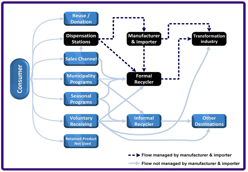 These actors are required to design and implement reverse logistics systems by the return of products and packaging after use by the consumer, independently of the public service of urban cleaning and solid waste management, manufacturers, importers, distributors and retailers of products which, by their characteristics, require or may require special systems for packaging, storage, collection, transportation, treatment or disposal, in order to avoid damage to the environment and public health, even after the consumption of these items ( São Paulo, 2015 ).