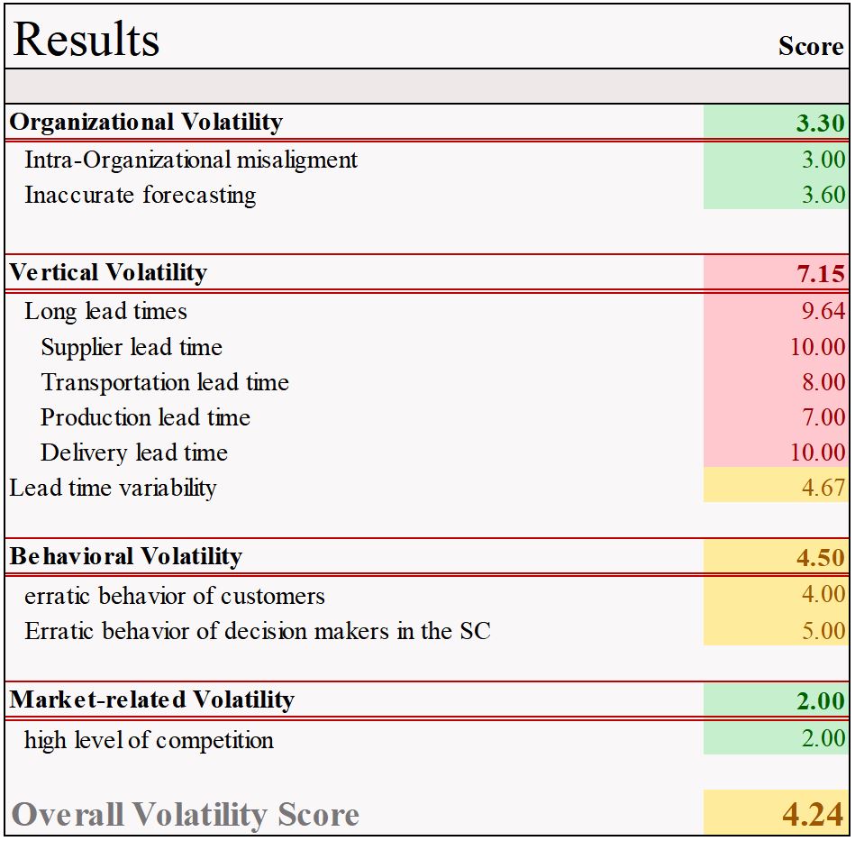 Although long lead times have been identified as the most impactful source of vertical volatility, it was decided to incorporate the source of variable lead times into the benchmarking instrument since the length of lead time has to be assessed in combination with its variability in the context of SCV (Nitsche, 2018; Nitsche & Durach, 2018).