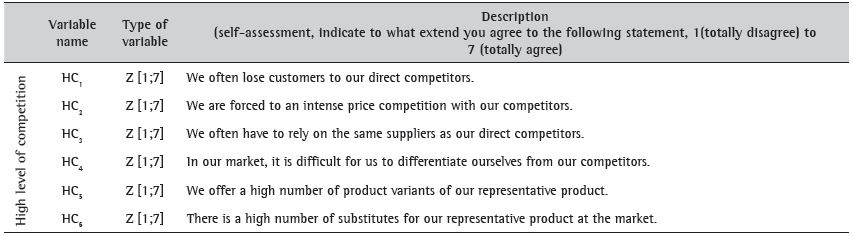 To assess market-related volatility, the source of high level of competition is measured via a qualitative self-assessment of six variables as described in Table 4. Thus, the Market-related Volatility Score (SCMV) results from the benchmarking of the mean of those input variables.