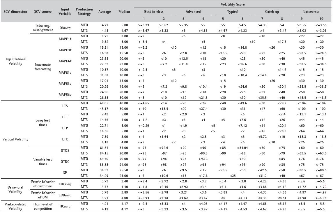 In addition, this study provides valuable information for practitioners about the current state of volatility management performance in the manufacturing sector. Based on the feedback from 87 manufacturing firms, a benchmark has been condensed and incorporated into the SCV assessment tool that facilitates managers to compare their SCV management performance against others. This is of high importance since performance data generated by the focal firm itself are more valuable if they can be put into context with the performance data of competitors. To add more value to this, the benchmark has been further contextualized according to the production strategy of the participating manufacturing firm. It can be observed that for some variables there are essential differences between make to order and make to stock production strategies, which adds further depth to the analysis of SCV performance.