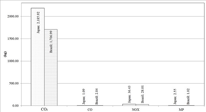 The selected functional unity, that represents the unity in which the emissions will be quantified, was the kilometer (km). The pollutants analyzed were: Carbon Dioxide (CO2), Carbon Monoxide (CO), Nitrogen Oxides (NOX) and Particulate Matter (MP).