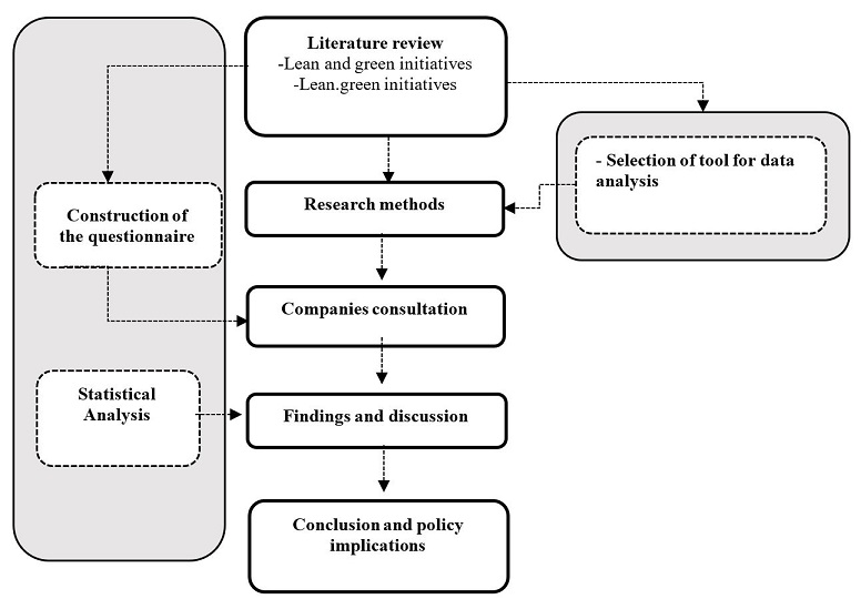 In order to achieve the objective of this research, a review of the relevant existing literature related to lean and green practices was conducted. Then, the case of companies in the North region of Portugal was analyzed. The data were analyzed resorting to a SEM approach.