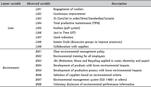 Based on the mentioned above, and particularly, the work developed by Jabbour et al. (2013), in this study, the lean tools which the impact will be analyzed were the Engagement of workers, the Continuous improvement, the 5S (Sort/Set in order/Shine/Standardize/Sustain), the Total productive maintenance (TPM), the Kanban (pull system), the Just in Time (JIT), the Stock reduction, the Kaizen Circle (discussion groups to improve processes) and the Collaboration with suppliers.