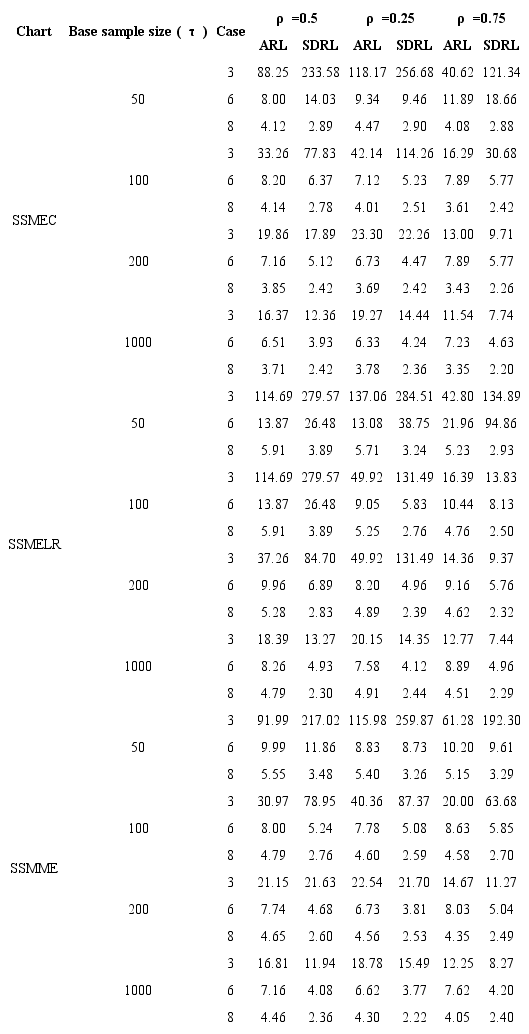 Next, we discuss detection performance of SSMEC, SSMELR and SSMME charts for predefined criteria such as magnitude of shift, correlation and learning periods.