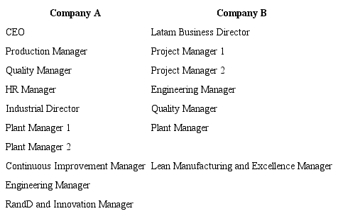 The study concentrated on observing the different hierarchical levels in each organization: (1) Top management; (2) Middle management that experiences the day-to-day reflections of the operational capabilities; (3) Team directly involved in training and diffusion of these capabilities among the units. This study is based on 17 in-depth interviews (as detailed in Table 1). The interviews last between 50 to 110 minutes, were recorded and transcribed. Besides, the researchers collect information from documents, statements of the organization on the Internet, and articles in business publications (Miles et al., 2014), and they also adopted direct, non-participative observation (Angrosino & Rosenberg, 2011) to observe the group dynamics.