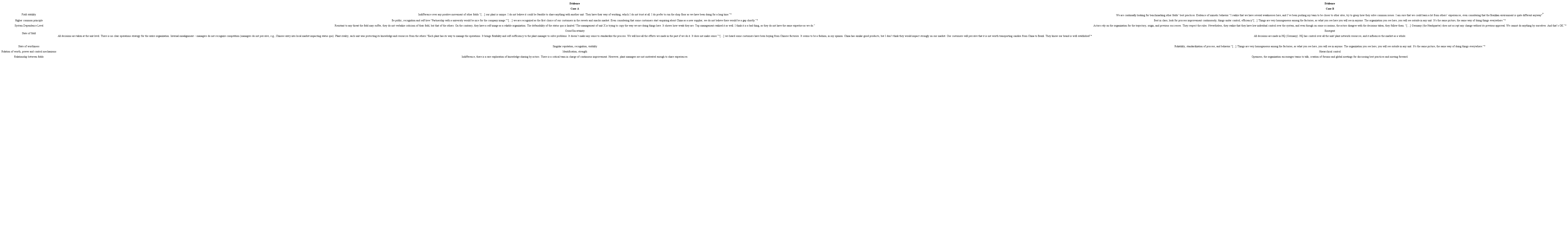 Our findings suggest that in Case A, fields are unstable (Fligstein, 2013). All units have their way of doing things and are quite resistant to change. They do not recognize another’s positive movements and even do not share best practices or lessons learned. Differently, Company B demonstrates the achievement of more stable fields. They search for continuous improvements, generally based on other fields of experience. Because the headquarters (HQ) supports continuous knowledge-sharing, and there is clear evidence of the willingness of an organization to use and share the knowledge, less capable matured units tend to imitate more mature field behavior as a growing adaptation process.