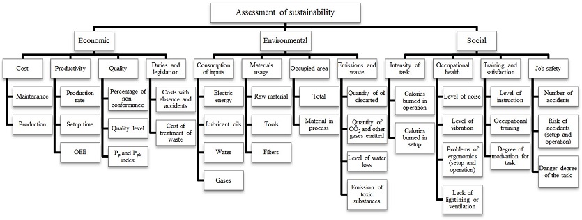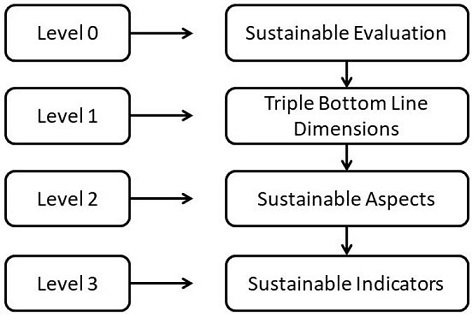 The choice of levels 2 and 3 was made based on the classification used in works such as Fan et al. (2010), Caetano et al. (2012) and Bhanot et al. (2015) in which, in order to facilitate the presentation and organization of information, the authors classified indicators within sustainability aspects. That is, in each of the three dimensions there may be some aspects, and, within each aspect, there are indicators as presented in this paper.