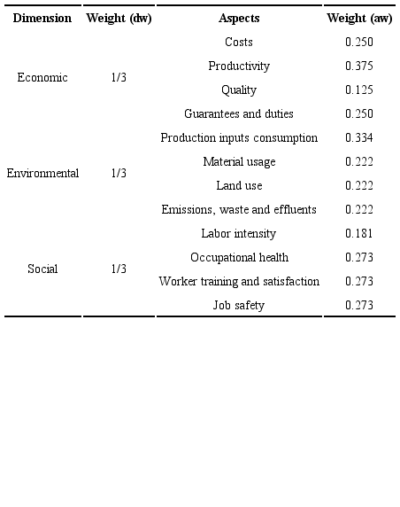 3.5. Step 5 – Determining the weight of dimensions and aspects of sustainability
