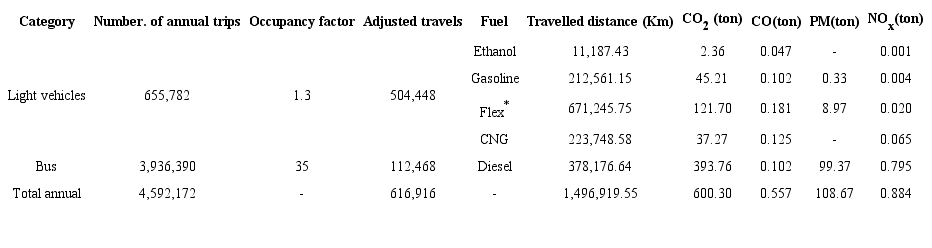 Table 5 shows the estimations of CO2, CO, PM and NOx emission reductions due to the use of BSS. Estimations were made according to the methodology presented in Section 3, considering the number of trips made, the transportation mode employed, and the total distances traveled. Due to the greater transport capacity offered by these transport modes when compared to bicycles, the average occupancy factor adopted was: 1.3 people per vehicle for cars, and 35 people per vehicle for the urban bus, thus trips were grouped according to the offered transportation capacity. Both data obtained from the Energy Matrix Report of the State of Rio de Janeiro - 2017-2031 (Rio de Janeiro, 2018).