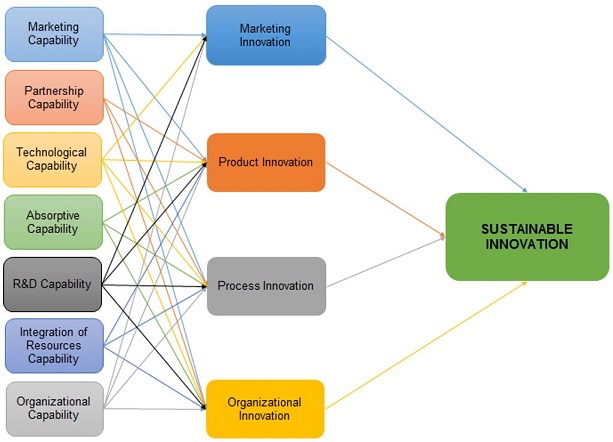 In order to achieve sustainable development, many companies have been looking for sustainable innovation taking into account the exploitation of resources and capabilities for this purpose (Zeng et al., 2017). Thus, innovation for sustainability seeks to achieve market differentiation and/or a relative improvement in environmental, economic, and social performance compared to the current situation (Kennedy et al., 2017). In this context, to develop sustainable innovation, companies need to coordinate and cooperate in the context of an innovation process (Mousavi & Bossink, 2017) and develop resources and capabilities responsible for such innovations.