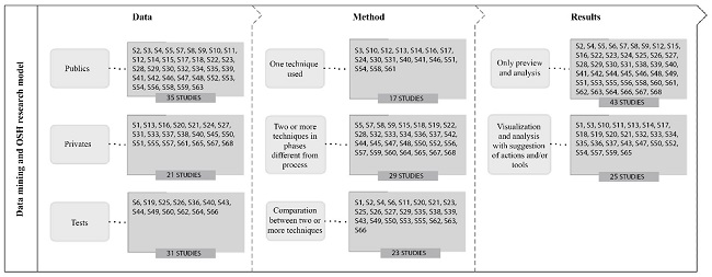 The inclusion criteria adopted met the following restrictions: Published from 2008; English-language publications; and Evidence OSH in DM application. Exclusion criteria were considered: Not peer reviewed; No evidence of OSH in DM application; Does not respond satisfactorily to research questions; In case of duplicate articles, keep only the most complete one. Figure 1 highlights the results obtained in conducting systematic mapping.