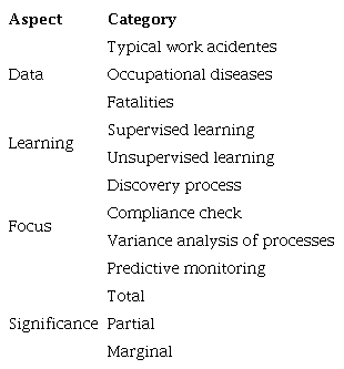 The application of mining methods to OSH data is also a tool to assist organizations managers. The monitoring of employees by a coordinator is a possibility to reduce accidents (Antwi-Afari et al., 2018; Yanar et al., 2019). Furthermore, evaluating results and correlations presented by data mining serves as a subsidy for management's strategic decision making (Bevilacqua et al., 2008; Del Pozo-Antúnez et al., 2018) or can be used to establish new policies aiming at workers’ health (Comberti et al., 2018; Liao & Perng, 2008).