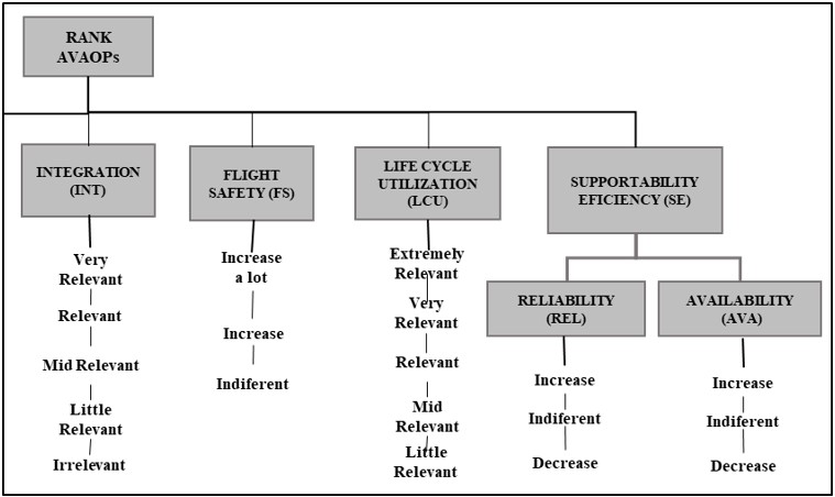 Considering the creation of new alternatives, because the AVAOPs flow – new deficiencies are identified during the months – and for any other kinds of problems, it is assumed that the model shall accept the addition of new options, alternatives. And Saaty (2006) in his argument about AHP with ratings, exposes that, if new alternatives arise, the older ranking remains the same, requiring a smaller number of pairwise comparisons, which would be exhausting otherwise (Mu & Pereyra-Rojas, 2018). To assess the alternatives, they must be independent of one another, or, at least, their independence must be assumed, preserving the rank (Saaty, 2008).