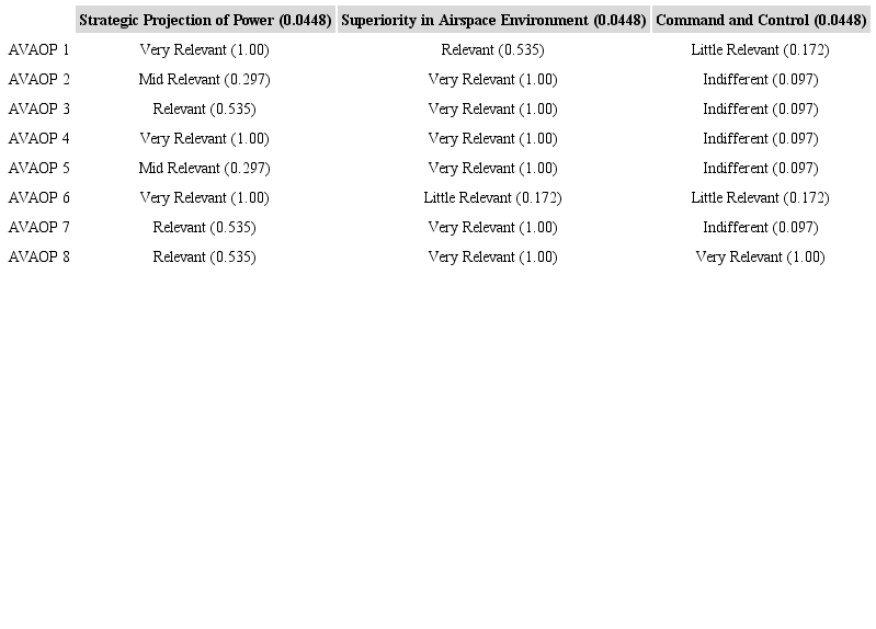 The next task was collecting judgments for pairwise comparisons. Each decision-maker accomplished one hundred judgments. Eight AVAOPs options were assessed to check the model. Half of them were not solved – AVAOP 1, AVAOP 3, AVAOP 4 and AVAOP 8. The AVAOPs content is hidden, although they are real examples of Operational Deficiencies informed to Readiness Command.