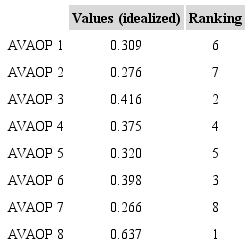In a first moment, as possible analysis of the results, the facilitator showed that three of four best AVAOPs were not solved yet, an interesting conclusion presenting that a method is needed for this decision, because it has not been taken completely rationally until the moment of this work.