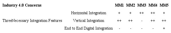 Based on these integration dimensions, in order to get an overview about the maturity models in PLM domain, some common aspects describing the relation between the Industry 4.0 concerns with the PLM maturity models are shown in Table 1.