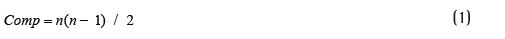 Values obtained will be converted into matrices and, the “weightings” are allocated in accordance with each attribute. The number of comparisons is represented in Equation 1.