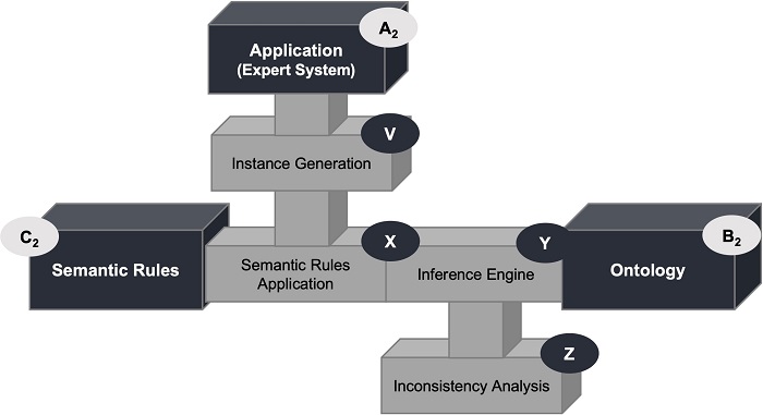 Semantic Rules (Detail “C2” of Figure 2) - The language used to create semantic rules in this research is the Semantic Web Rule Language (SWRL). This language is the most common among other existing languages, allowing the combination of rules with ontologies developed in Web Ontology Language (OWL). SWRL allows users to write reasoning rules about the individuals represented in the ontology, making it possible to infer new knowledge about individuals by applying an inference engine. When the antecedent conditions are true, the consequent conditions are also true.