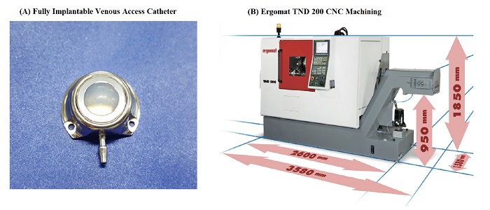 The experimental case was carried out at the Erasto Gaertner Bioengineering Institute (Instituto de Bioenegenharia Erasto Gaertner - IBEG), a manufacturer of implantable Vascular Access Catheterindicated for people with long term treatment, located in Curitiba, Brazil. The catheters, shown in Detail “A” of Figure 4, are produced through machining processes on a CNC machine named Ergomat TND 200 series that is illustrated in Detail “B” of Figure 4.