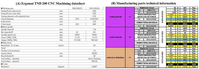 The application of the IDEIEs 4.0 followed phase A1 and B1 of Figure 2 are to map the information about the Worker, Manufacturing process and Machine. Figure 5 shows, in Detail “A”, the machine and technical data and the data collected about the product and manufacturing process in Detail B.