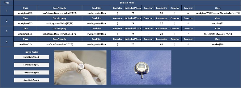 By applying these semantic rules, the knowledge is created for supporting the professionals during the decision-making process and the production control analysis through the indicators like productivity and quality and the defects that occurred in the part machining process. First, however, it is necessary to understand what needs to be inferred before the semantic rules creation to ensure the part’s quality and productivity. In this way, parameters defined as an ideal must be identified so that the cause-and-effect relationship between the individuals can be defined.
