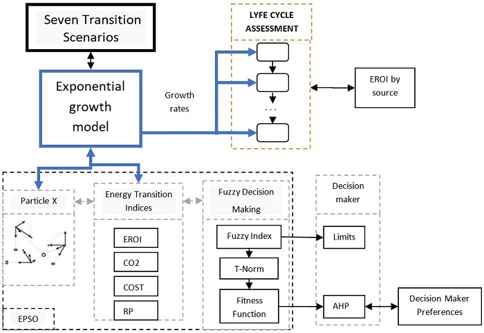 Other works to mention are the following. Kokkinos et al. (2020) have proposed a circular bio-economy via ET supported by Fuzzy Cognitive Map modeling towards sustainable low-carbon environment. Capellán-Pérez et al. (2019) have proposed a dynamic EROI and material requirements in scenarios of global transition to renewable energies. Navas-Anguita et al. (2019) have proposed a Simulation and LCA of synthetic fuels produced via biogas dry reforming and Fischer-Tropsch synthesis. Bogdanov et al. (2021) have proposed a Low-cost renewable electricity as the key driver of the global ET towards sustainability. Adesanya et al. (2020) have proposed a transition of US with 100% renewable electricity. Ligus & Peternek (2018) have proposed the determination of most suitable low-emission energy technologies development in Poland using integrated fuzzy AHP-TOPSIS method.