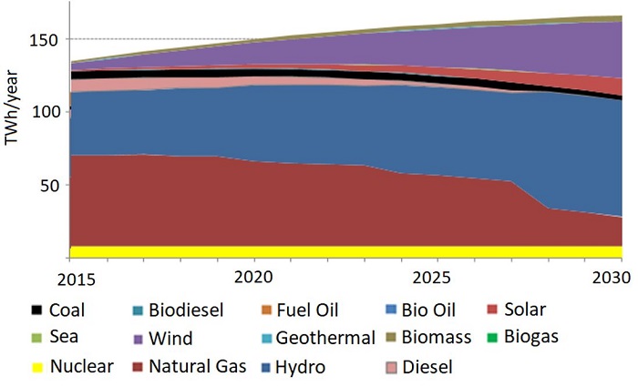 ➢ The contribution of nuclear energy remains constant depending on the data from 2015, since the installed power cannot be increased.