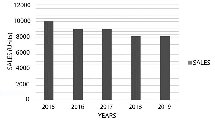 For the identification of this problem, the first step was the collection of sales information. Figure 1 shows a trend in the number of orders sold over the last few years, where it tends to decrease, the last year data has been taken for analysis.