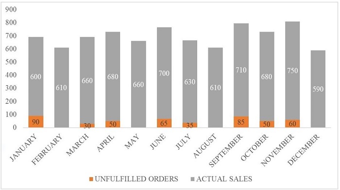 Figure 2 shows total orders, unfulfilled orders and actual sales in 2019.
