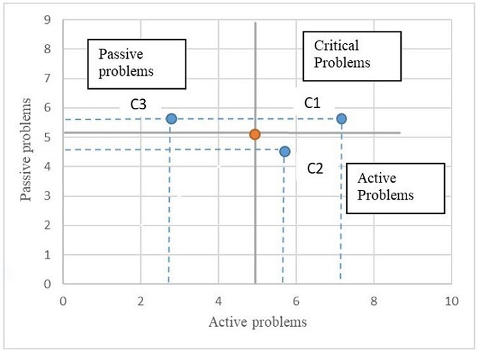The Zoop focus diagram was developed. In Figure 6, the coordinates obtained with the weighting of the Vester diagram were placed and it was obtained that the critical problem is seized by the deficiency in the production processes, the active problem as the deficient productive capacity and the passive problem as the waste of production time.