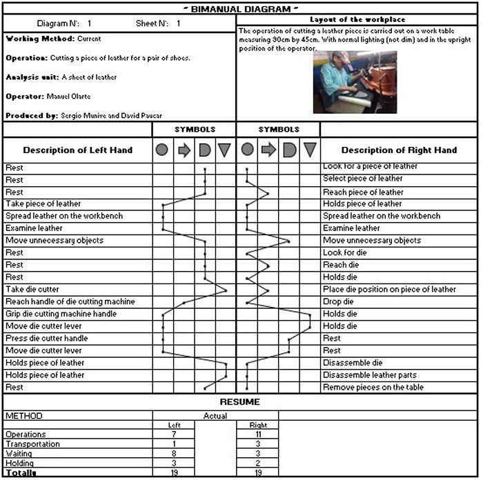 The Bimanual diagram allows us to know all the activities carried out by an operator in one of the most critical areas of the company's operations flow, which is observed and detailed in Figure 8 (Andrade et al., 2019).