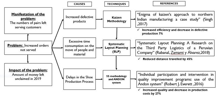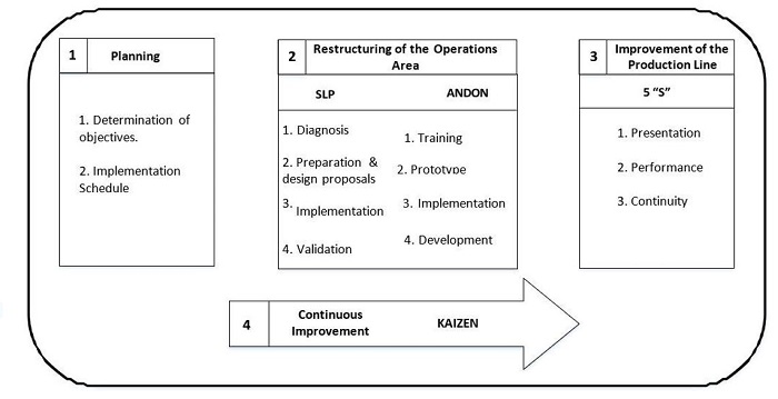The chosen tools are based on previous success cases where we started from a situation similar to the current situation of this project which were identified during the literature review of sources that serve as a starting point to know how to react and what measures to propose to solve the problems identified, so it was decided to propose the use of lean manufacturing methodologies such as the implementation of the 5s, SLP, Andon system and finally the application of kaizen.