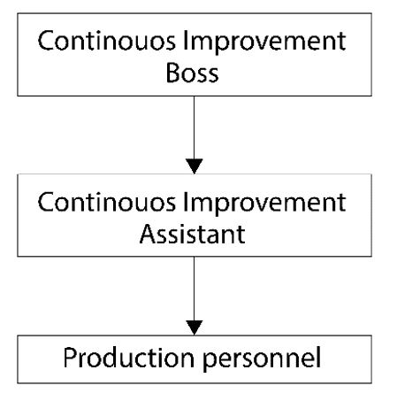 Figure 18 shows an organizational chart where the leader responsible for the operation and successful implementation of the methodology is the Continuous Improvement Manager (the new head of production). The next step is the training of both production and administrative staff, where the production manager will receive an additional course that allows him to acquire skills and faculties to carry out the activities in