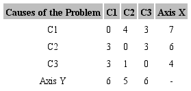 Based on this, the main causes were defined as C1, C2 and C3. Table 2 shows the Vester matrix developed with a chosen weight with respect to the information obtained from each of the causes presented.