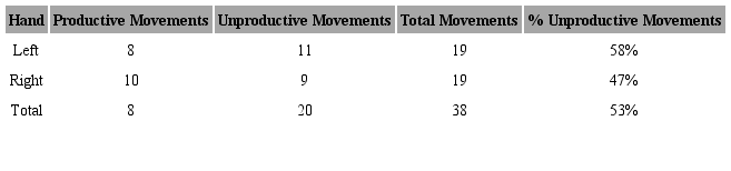 An excessive number of unproductive movements is evident, especially on the part of the left hand.