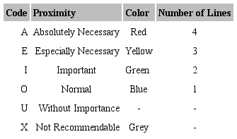 The interactions between the areas are established taking into account the flow of materials and the product in process. The intensity levels are given by the following parameters: A (Absolutely Necessary), E (Especially Necessary), I (Important), O (Normal), U (Without Importance), X (Not Recommendable).