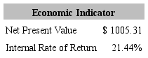 Calculations run over a period of five years yield positive results. Table 12 shows a Net Present Value (NPV) of $1,005.31 and an Internal Rate of Return (IRR) of 21.44%.