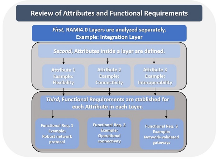 The authors propose a maturity view through the lens of RAMI4.0/FEI architecture in early studies. It aims to understand maintenance systems' maturity by the relations between its attributes and functional requirements (Cleland-Huang, 2007). The present work defines Attribute as something that qualifies a concept, in this case, maintenance. The definition adopted for Functional Requirement is something that supports the Attribute to which it is related. Figure 3 illustrates how these elements are related to each other.
