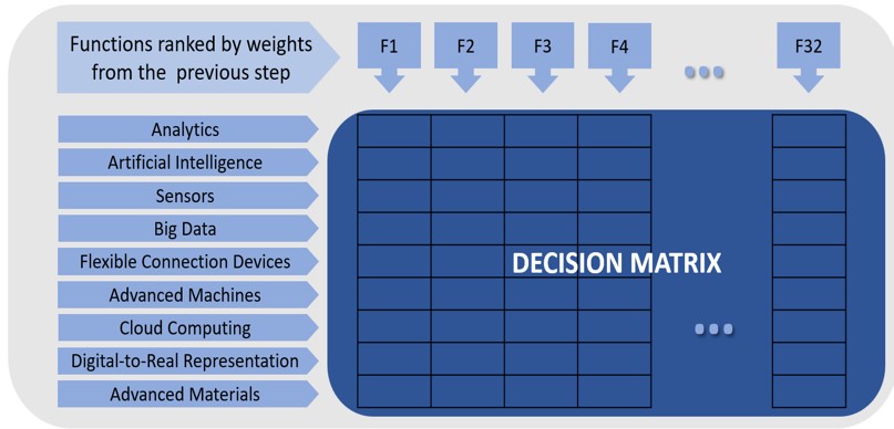 Based on the maintenance functions weighted in the previous stage, Step 03 objective is the prioritization of I4.0 technologies that best suit those functions. Here, the decision model does not require the organization’s engineers and maintainers, leaving the role of decision-maker to a maintenance-4.0 specialist. Considering it, the literature review on I4.0 technologies under the maintenance domain (section 2.3) serves as a base.