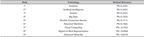 For Step 03, one of the authors played the role of decision-maker as a specialist/consultant. This was possible because of the knowledge acquired by the literature review on I4.0 technologies in the maintenance context. The weights of the functions obtained in Step 02 were imputed in the Promethee II method (seen in Figure 8). Then the alternatives, Maintenance-4.0 technology groups, were analyzed by their level of need i.e., syntactic graduation from 1 to 9. Table 5 presents the ranking of the most relevant technology groups to meet the Maintenance-4.0 functions. The phi, represents the preference index used by the method.
