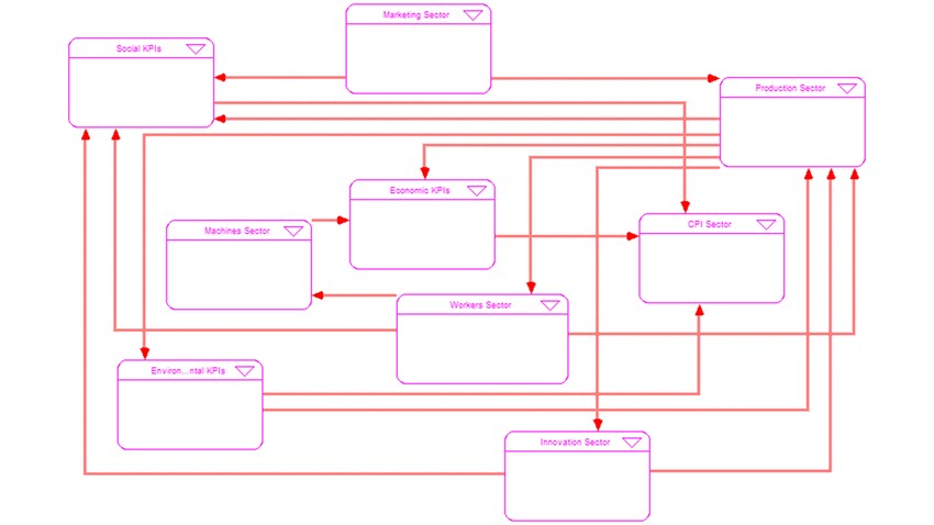 Nevertheless, the model has some considerations. Firstly, the weights used for each indicator, as presented in Table 2., are the same as those proposed by Pavláková Dočekalová & Kocmanová (2016). These weights were based on the Czech manufacturing sector and may require adjustments for new conditions. Secondly, the model does not implement the corporate governance indicator proposed by Pavláková Dočekalová & Kocmanová (2016), as some of the data required was not available on the GRI reports or the systems were hard to model. Thirdly, the model places low emphasis on energy consumption and emission levels, which are deemed to have a significant impact on the environmental performance of a corporation. These important limitations will be tackled in further work, along with further analysis of the variables on the model that could be exposed to the decision-makers’ control. Moreover, multi-criteria optimization methods could be used to automatically determine the best strategy, given the existing conditions. Besides, the model can be adapted to corporations with other characteristics, such as service providers. Additionally, concepts such as regenerative capitalism can be included to broaden the perspective of the model (Elkington, 2020).