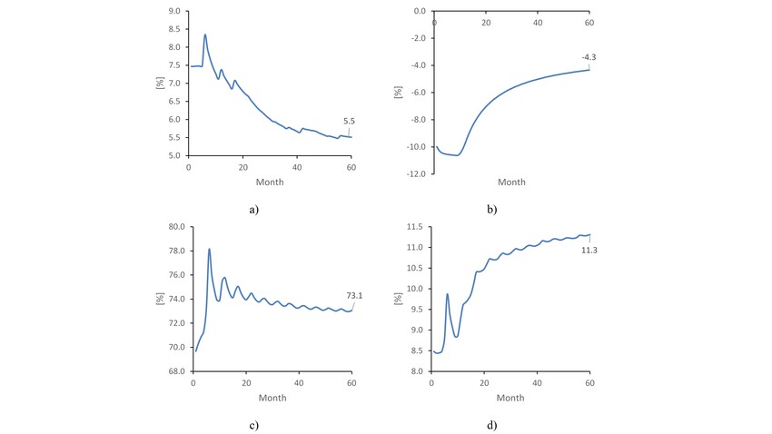 In the following section, the best results from the sensitivity analysis are analyzed during the sixty-month planning horizon, where for each KPI is presented as a percentage increase from the BAU conditions.