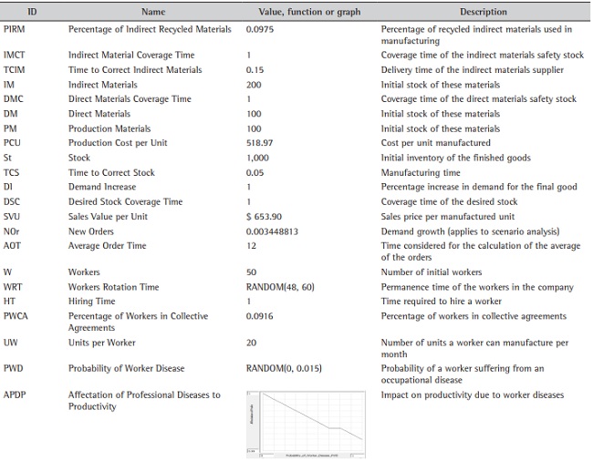 The model’s consistency, confidence, and robustness were validated following a multipronged approach. Initially, the structure and behavior of the model were checked for dimensional consistency and sensitivity as defined by Barlas (1996) and Qudrat-Ullah & Seong (2010). For the former, using the “Check Units” tool included in iThink, the equations’ units of measurement are verified for consistency. For the latter, the upper and lower bounds for each variable are defined. This upper and lower bounds represent significant changes in the behavior of the model, added to the adjustment capacity in the planning of corporate strategies, which shows, on the one hand, the robustness of the model's behavior, and on the other hand, the viability in the implementation of the actions to be executed. Then, the model is tested using these extreme conditions. The model presented is a proposal for the sustainability analysis in the manufacturing planning processes, considering the main data collection of the Colombian manufacturing sector, for this reason, the validation is not focused on the historical data of a particular company.