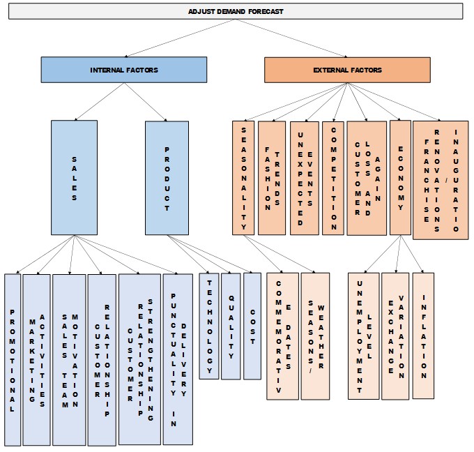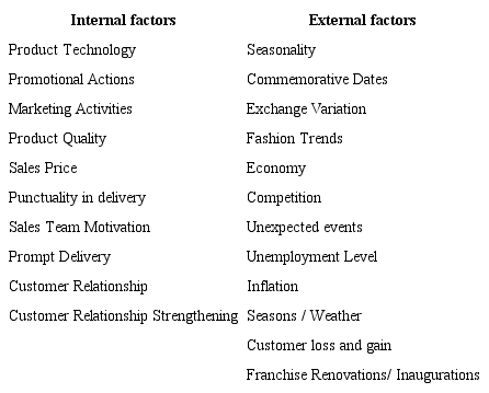 Level 2 – internal criteria (sales and product) and external criteria (seasonality, fashion trends, unexpected events, competition, loss and gain of customers, economic indicators, reform and opening of franchises);