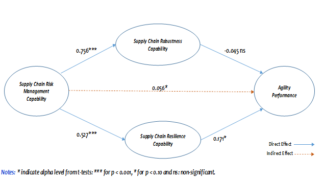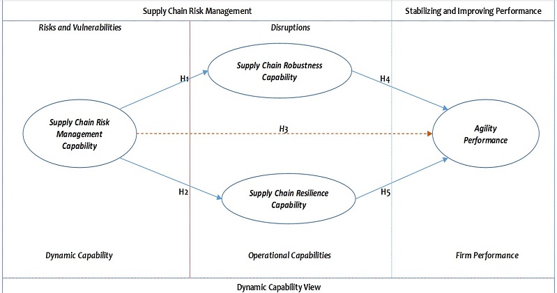 Main findings: The development of a supply chain risk management capability supported by the generation and/or reconfiguration of the operational capabilities inherent in supply chain robustness and supply chain resilience results in improved agility performance for global supply chain partner firms in times of disruptions.