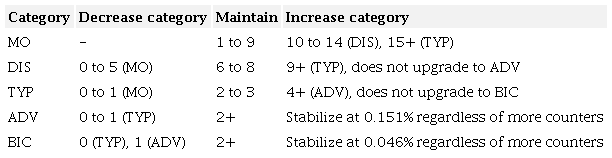 In the case of the MO warehouse, up to nine counters do not upgrade the warehouse category; a ten to fourteen counters team must decrease the IRI level to the DIS category and fifteen plus to improve TYP levels. As in all simulations there are 100 workers in picking and 5 in receiving, the warehouse manager needs to improve their workforce in 10% to maintain or improve its performance. In the same way, up to 5 counters in a DIS warehouse is not enough to keep IRI down: six to eight counters are necessary to remain in a DIS category, and nine plus to increase the category.