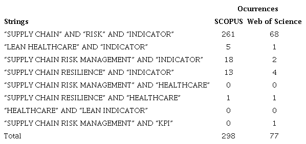 The search strings were based in consolidated Supply Chain Risk Management and Supply Chain Resilience terminologies as shown in Table 1.