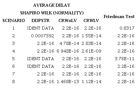With the aim of verifying data normality, the Shapiro-Wilk test was performed. Where the data of the 150 simulation replications are identical, the cell is filled with “IDENT DATA”. Thus, considering a significance level of 5%, in all situations, at least one of the methods did not meet the data normality condition. It was necessary, therefore, to perform non-parametric tests to compare the methods. The Friedman test was applied, for this purpose, to identify whether there were significant differences between at least two rules. The results of the tests are shown in Tables 3 and 4. Considering a significance level of 5%, there was a rule that was not normal in all scenarios; in addition, there was a significant difference in all scenarios except in 1. Therefore, the Nemenyi test with Bonferroni correction was performed to identify which rules had significant differences at the 5% significance level. These results are given in Tables 5 and 6.