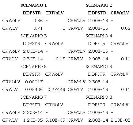 In addition, it is worth noting that CRWLV outperformed CRWoLV in all scenarios. However, it only showed significant statistical difference in scenarios 7 and 8. Therefore, checking whether urgent requests will exceed the load assigned to them can generate benefits for the company. However, it should analyze whether the choice of this method is justified. Because, the CRWLV generates good benefits in determined scenarios, especially where there is high resource utilization and high variability. In other scenarios, such as those with low variability and utilization, your choice wasn't justified, as it is more sophisticated and requires more calculations.