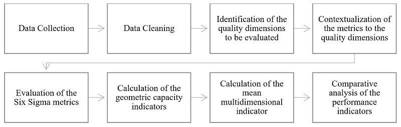 To achieve the objectives of this research, in the first stage, a quantitative evaluation of the Six Sigma metrics of the quality dimensions is carried out. In the second stage, the performance of the quality dimensions is evaluated using the multidimensional geometric capacity indicator, and in the third stage, the multidimensional mean capacity indicator is calculated. With the performance evaluation, it can finally be shown which of the three statistical control criteria is more rigorous to evaluate a service. And, finally, in the fourth stage, all the Six Sigma metrics and the multivariate capacity indicators that are the object of this investigation are compared.